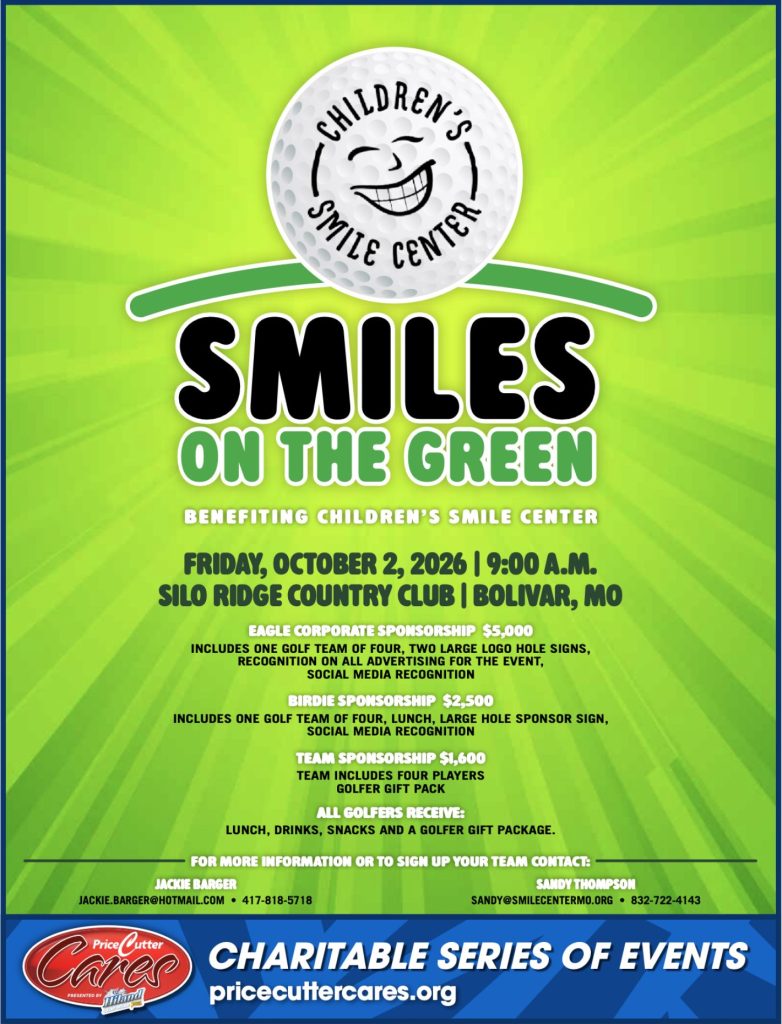 Crack a smile with us at Smiles on the Green, our tournament benefitting Children’s Smile Center! Join us at the Silo Ridge Country Club in Bolivar for an outstanding day of golf. All participants will receive lunch, drinks, snacks, and a golfer gift package for playing.